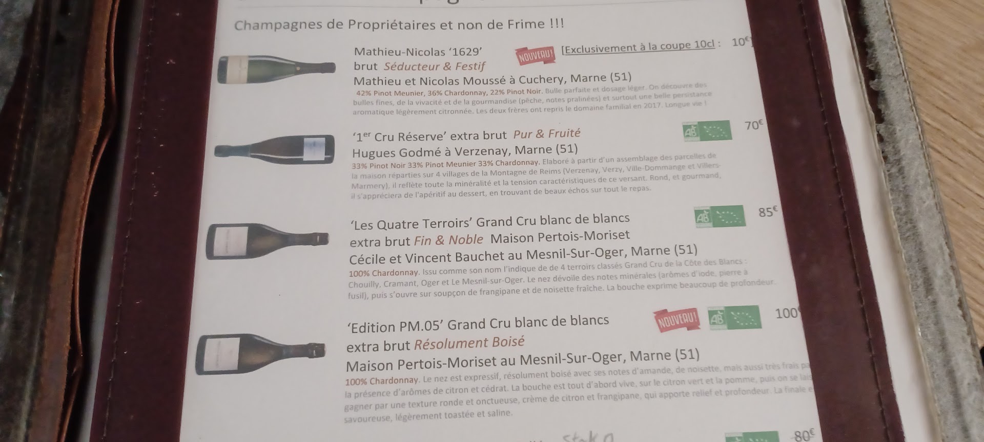 Le Gavroche Page des Champagnes